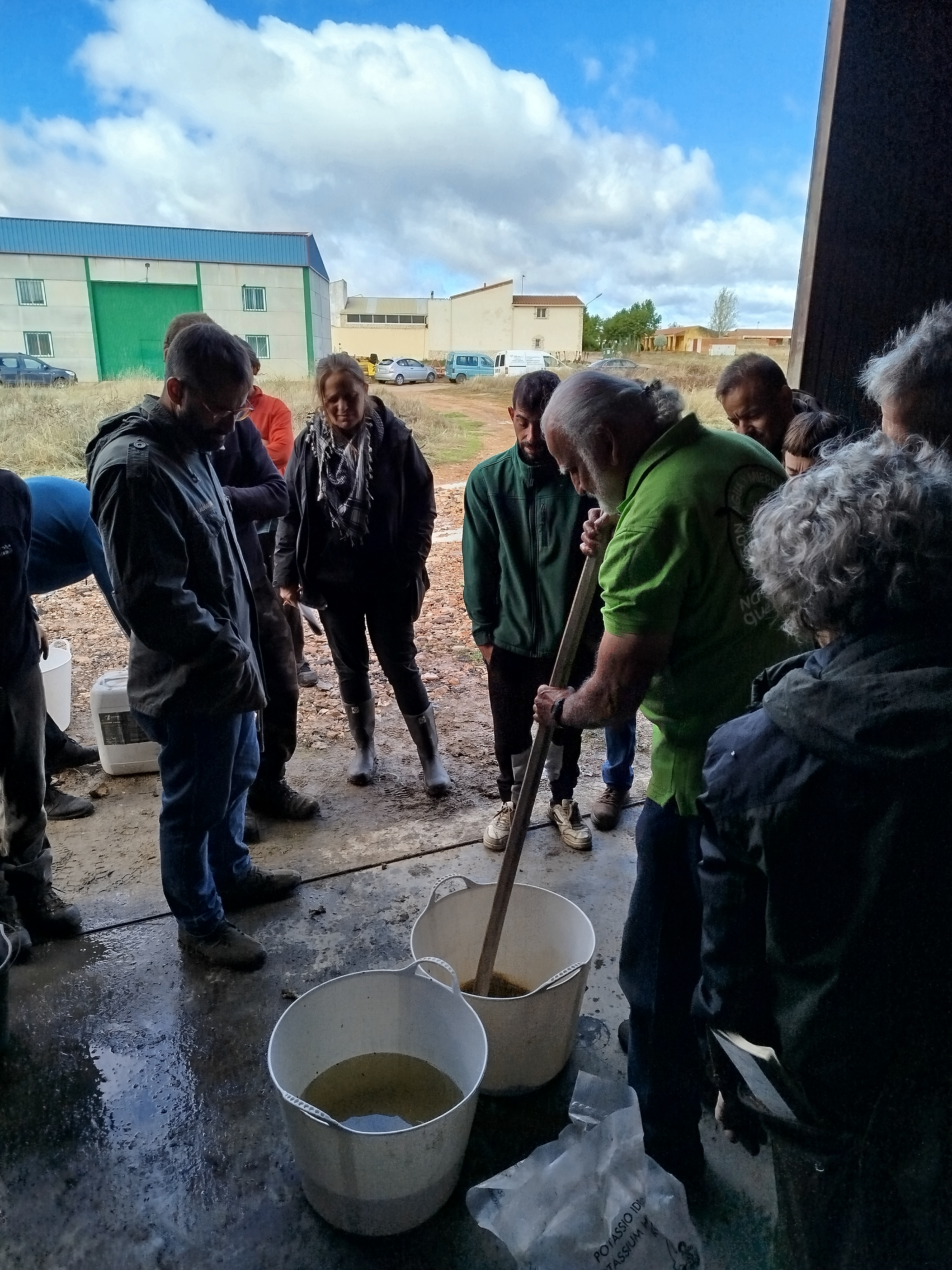 En el segundo día nos sumergimos en la fotosíntesis, la energía y el papel de los minerales en la vida del suelo, combinando teoría con prácticas como la elaboración de biofertilizantes (quelatos), la captura y reproducción de microorganismos benéficos, su activación líquida, el enriquecimiento mineral, la elaboración de hidrolatos y la producción de biocarbón. Todo ello con un enfoque práctico y participativo, trabajando directamente con los materiales y viendo los resultados en campo.